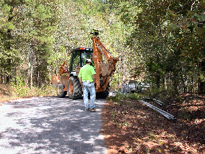 Pipes being layed for power lines to lot: