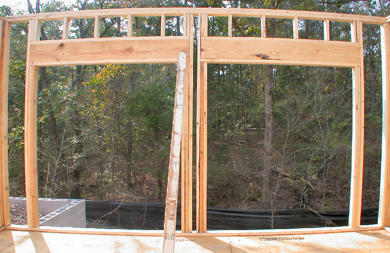 The opening looks like a double door, but it is the framing for a pocket door, so the actual opening to the bedroom will be a standard door width. To the right is the master closet and bath.