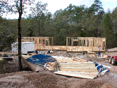 The last pictures taken were of the subflooring and floor joists not being completed on the first, so when we arrived only two days later to find the walls almost completely framed, we were the ones floored.