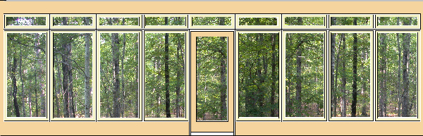 Walking in the front door, you look out the wall of windows to the trees in the back: