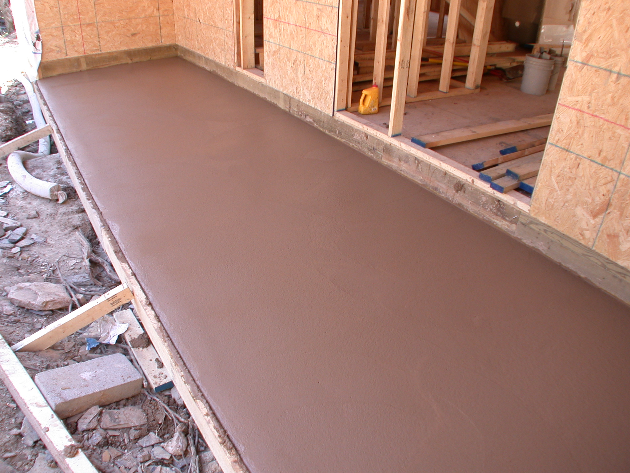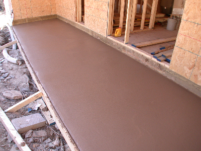 The process was repeated for the front porch. After allowing several days for the tint powder to bond, the loose tint powder will be cleaned off and the concrete sealed.
