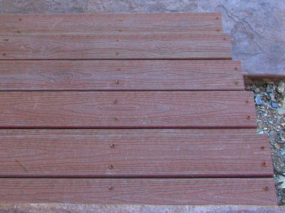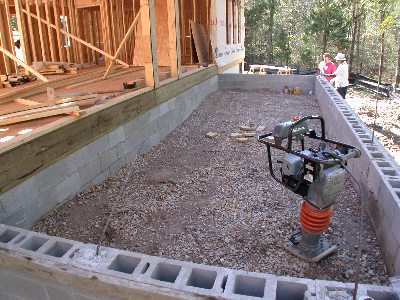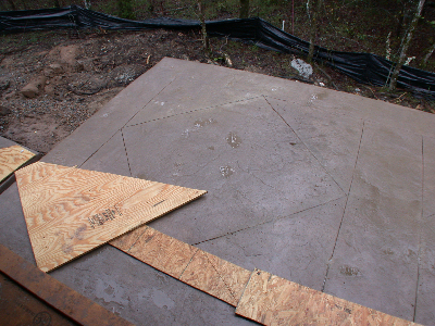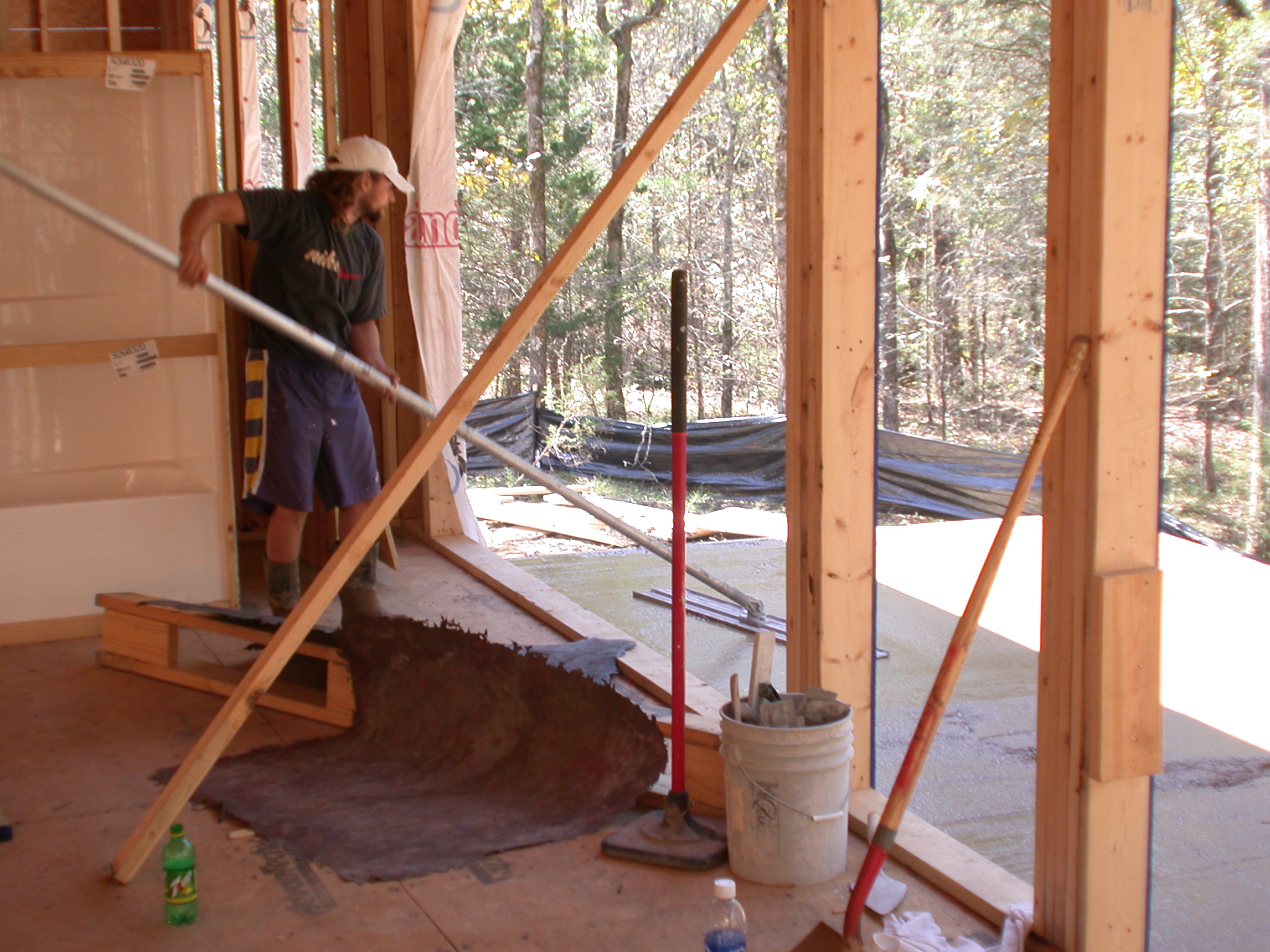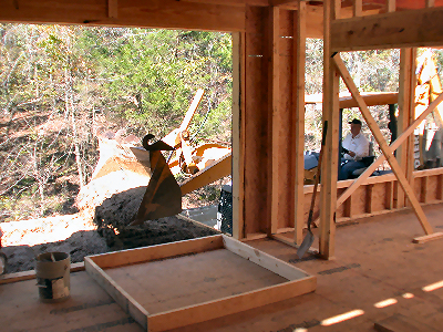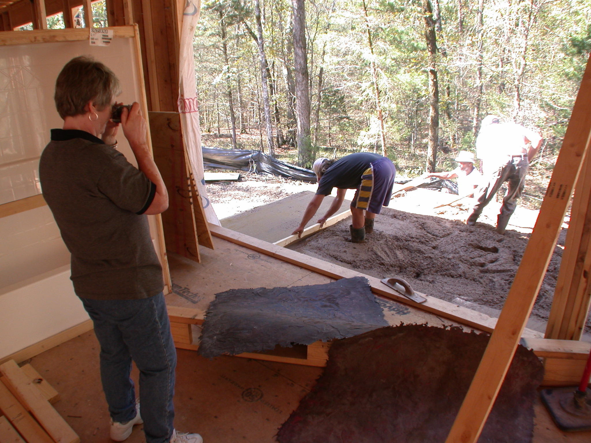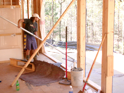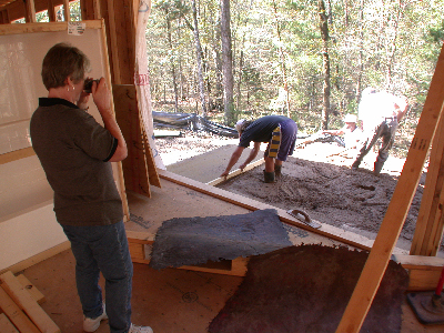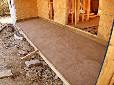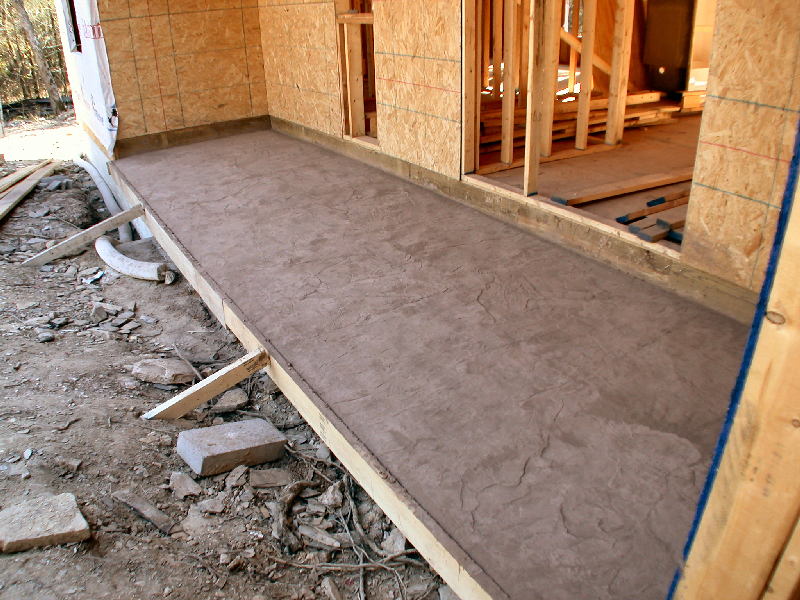 When Buss decided that it would be best (because of the slope of the lot) to change from a slab to pier-and-beam, he offered to keep the back patio and front porch the dyed and stamped concrete Judy wanted.