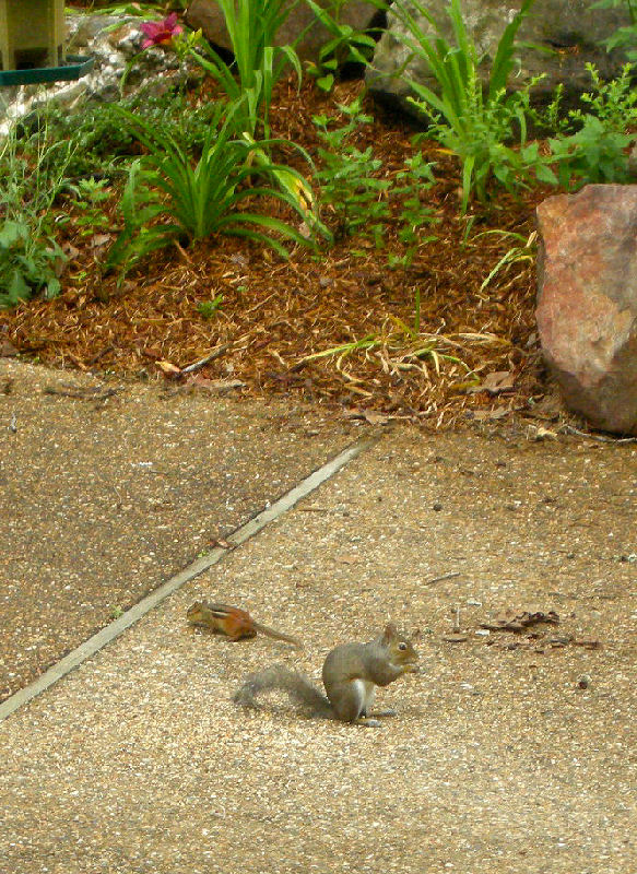 Pole dancing or: "He'll never see me behind this feeder pole.".