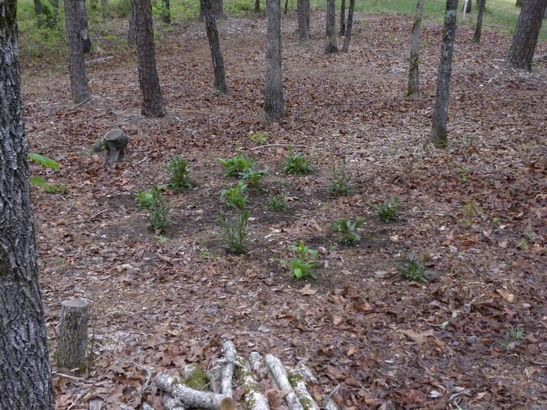 This bed was off by itself (as seen in the plat below) to give them room to spread. They are not looking great, but some have survived.