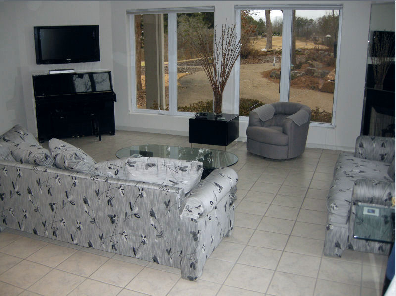 We were concerned about having so many big windows because the back of the house faces west, but the thick forest of tall trees very close to the back of the house provided sufficient shade.