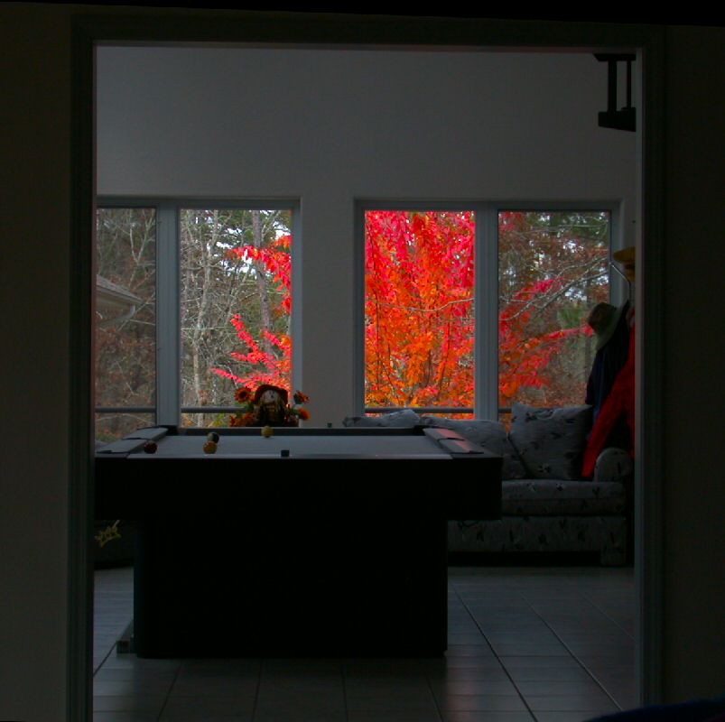 After having our house built, I found out that Frank Lloyd Wright's Fallingwater house, which has been called the best known private residence in the world by one of the greatest architects who ever lived, has the dining room tucked into a dark space away from all the windows, and the reason given is that you would normally be entertaining at night when it is dark anyway. With all modesty -- that was my thinking exactly.