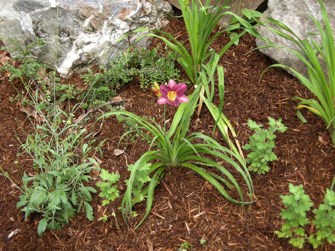 Northwest bed. 'Little Business' (right of Monarda, left of Stella D'Oro). June 25, 2014