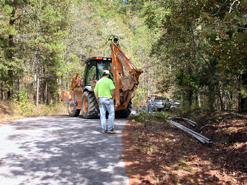 Pipes being layed for power lines to lot: