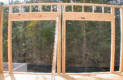 The opening looks like a double door, but it is the framing for a pocket door, so the actual opening to the bedroom will be a standard door width. To the right is the master closet and bath.