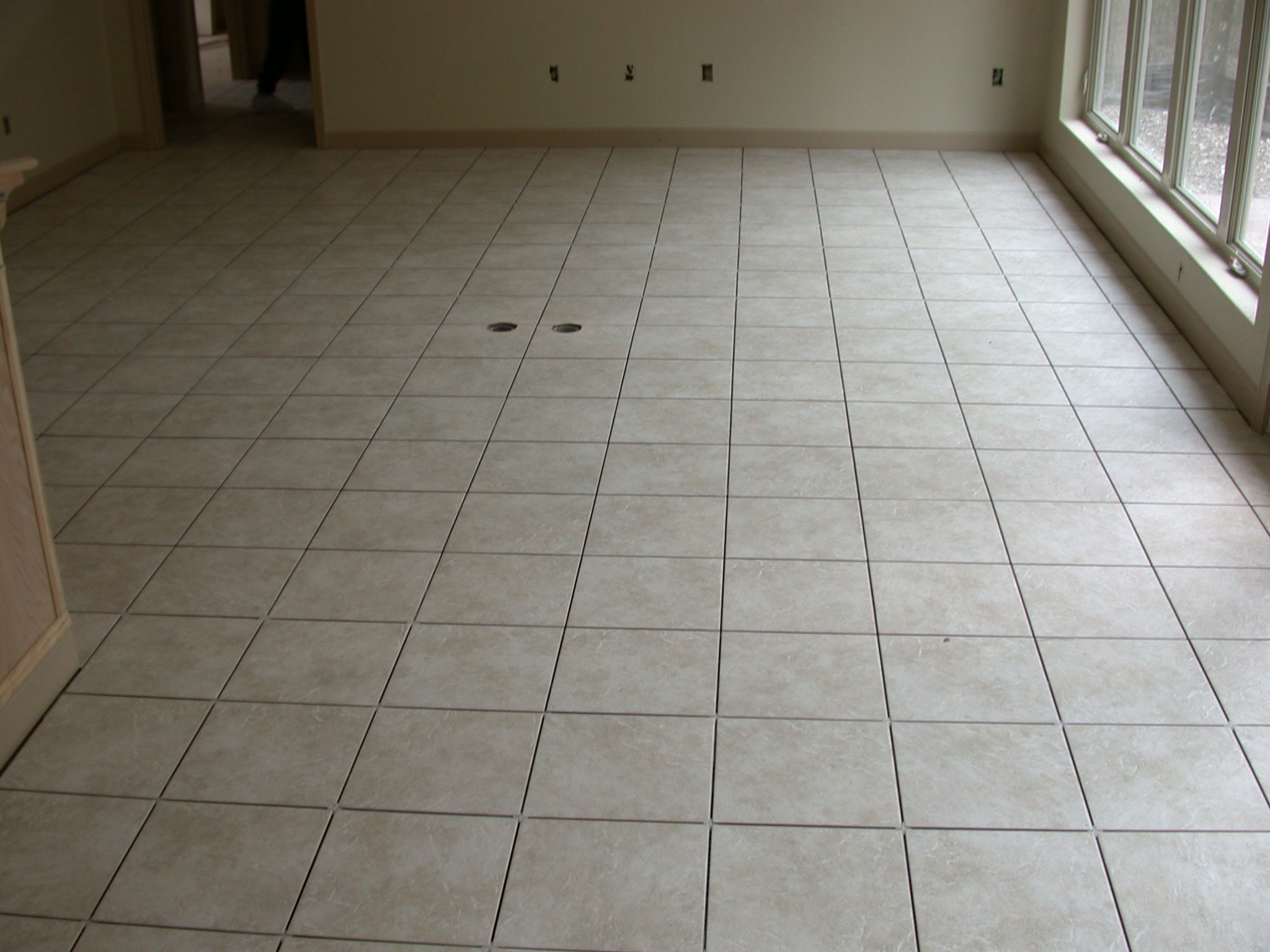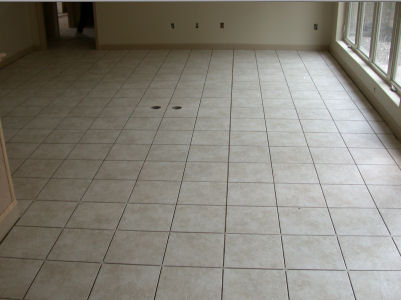 Living room tile being installed: