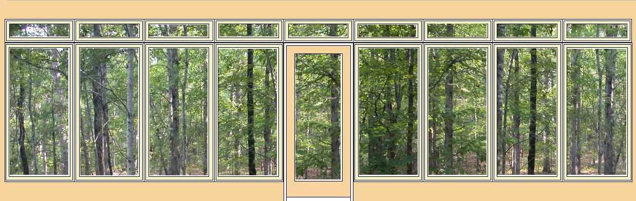 The windows above face due West, right into the afternoon sun. Ordinarily, this would be a bad thing for most of the year because of the heat and light coming in, but about 15' behind the house are a lot of tall tress which will block most of the sun during the warm months, but which will let heat into the house during the cold months when the trees lose their leaves. Without the trees, it would be better to find a lot where these windows would face North. If the windows faced South, you could have wider than normal eaves to block the Summer sun and let in the Winter sun. If you have a patio or deck out back, you could cover it to block the Western sun, but that will make the house darker all the time. In our house, we added tint to windows on the West side, which helps some. In Judy's house, we specified windows with Low-e and very low (.30-.32) heat gain (SHGC) and heat loss (U-factor) ratings. A low VT rating means that not as much light gets through because the windows have a tint built in (as opposed to applied in a sheet); we didn't specify low VT, but Buss apparently did because we can tell by looking that they have some tint to them, which will reduce glare. A low U-factor (heat-loss rating) is particularly important with a lot of windows because you will lose a lot of heat through them during the cold months. Window coverings help, but kind of defeat the purpose of having the big windows in the first place. While on the subject of the wall of windows -- something I didn't know to specify, but which Buss did, was to make the window-wall studs 2x6 rather than 2x4 like the rest of the house. The reason is that the windows do not provide any structural support. In addition to the 2x6s, a large header board runs the length of the 28-foot wall of windows, plus in the picture above, you can see that on either side of the door are FIVE 2x6 studs. The electrician actually had to carve out a space to put the light switches by the door. Folks, this is a SOLID house!
