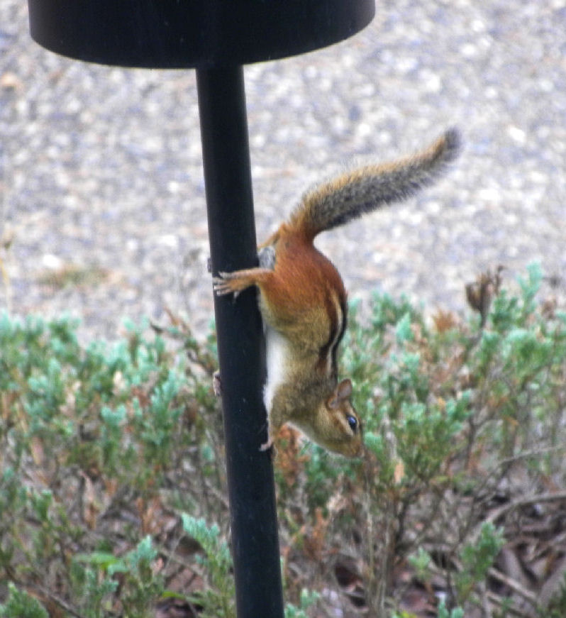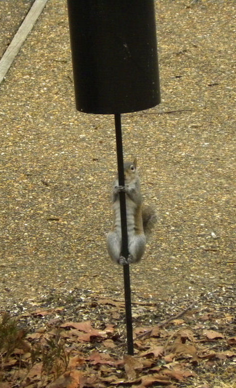 Pole dancing or: "He'll never see me behind this feeder pole.".